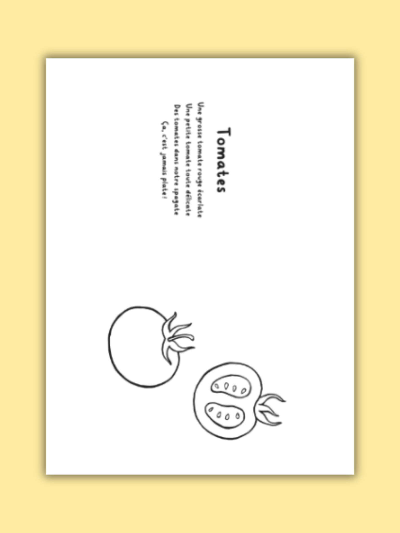 Ce recueil de poèmes à colorier met en vedette les fruits et les légumes du Québec, des rimettes et le talent artistique de votre enfant.